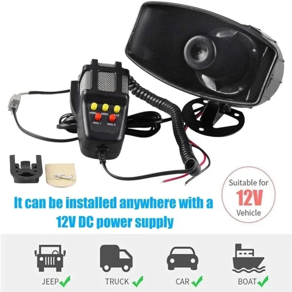 - Universal – Suitable for any 12V vehicle: The car siren speaker can be installed in any 12V DC vehicle. You can install it in your car, truck, jeep, RV, boat etc.