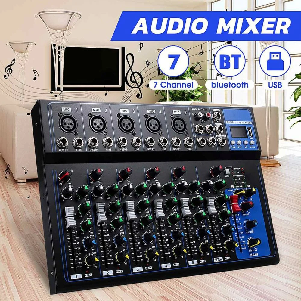 - Name: 7 Channel bluetooth DJ Mic Audio mixer Contrl LED Digital Display Music Stream