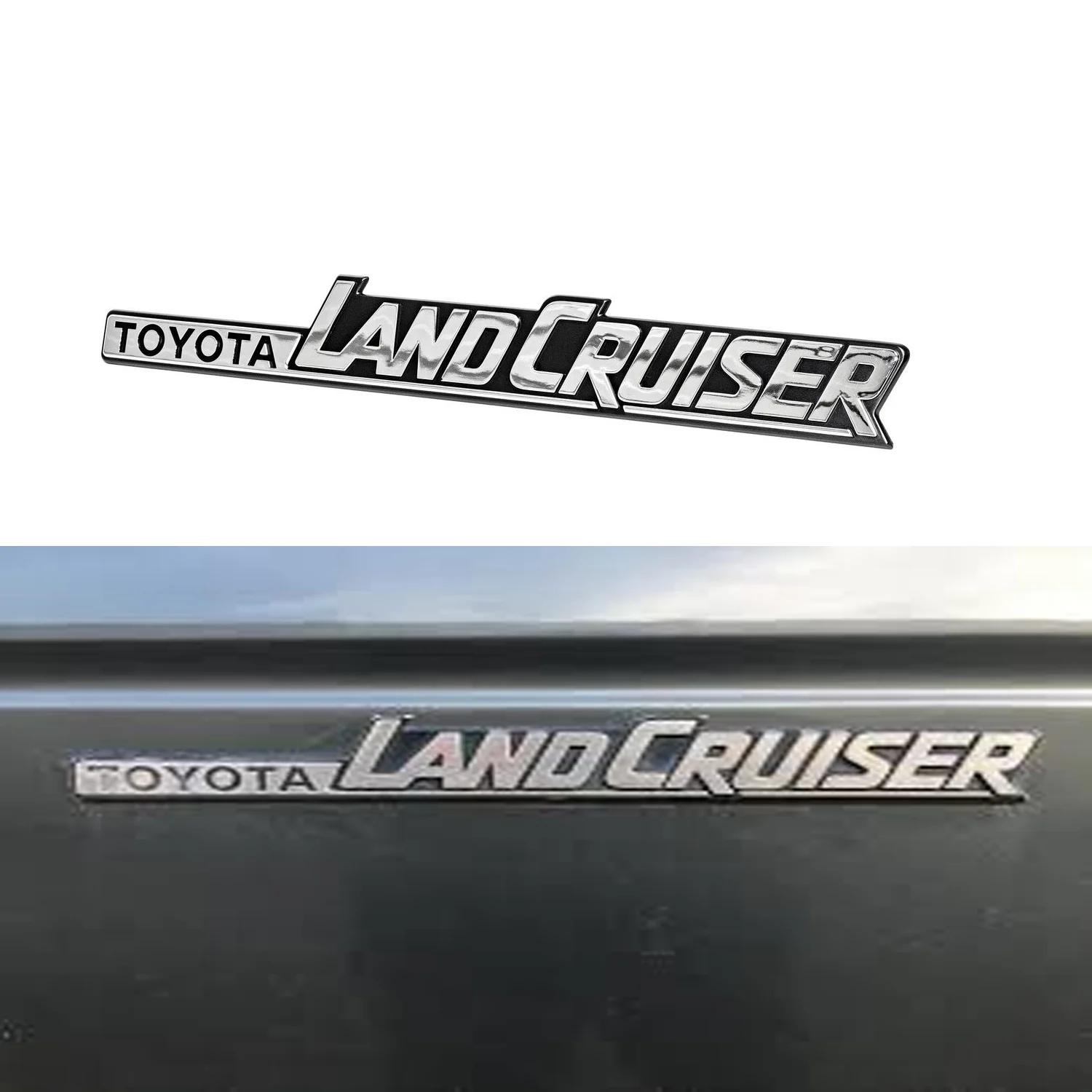 Toyota Land Cruiser 3D Silver Colour Logo Emblem Badge Decal 18cm X 4cm